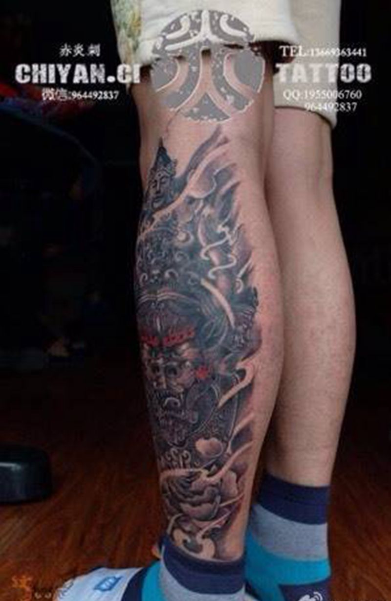 • T网红王老大花腿龙纹身图片_腿部新传统纹身图案