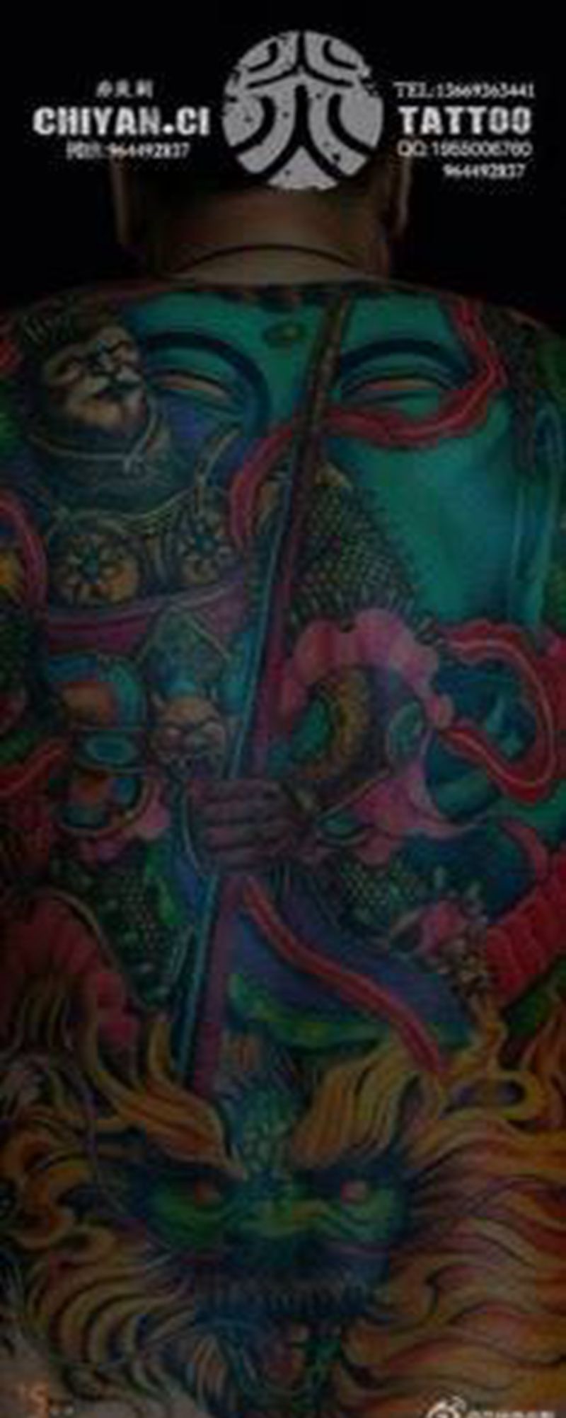 黑灰满背纹身图案