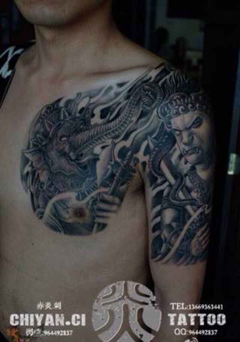 • 纹身吧推荐的披肩图腾半胛纹身图案作品展示