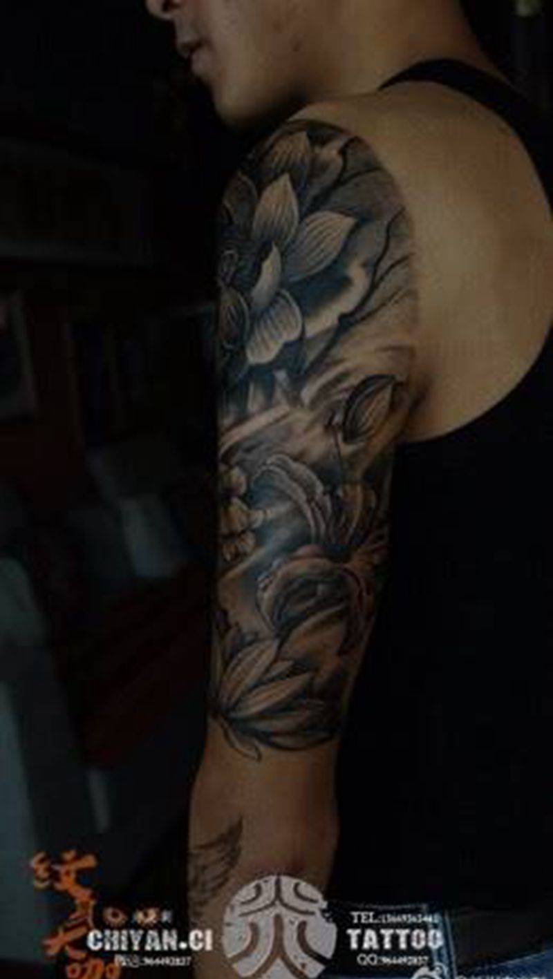 一组15张莲花纹身手