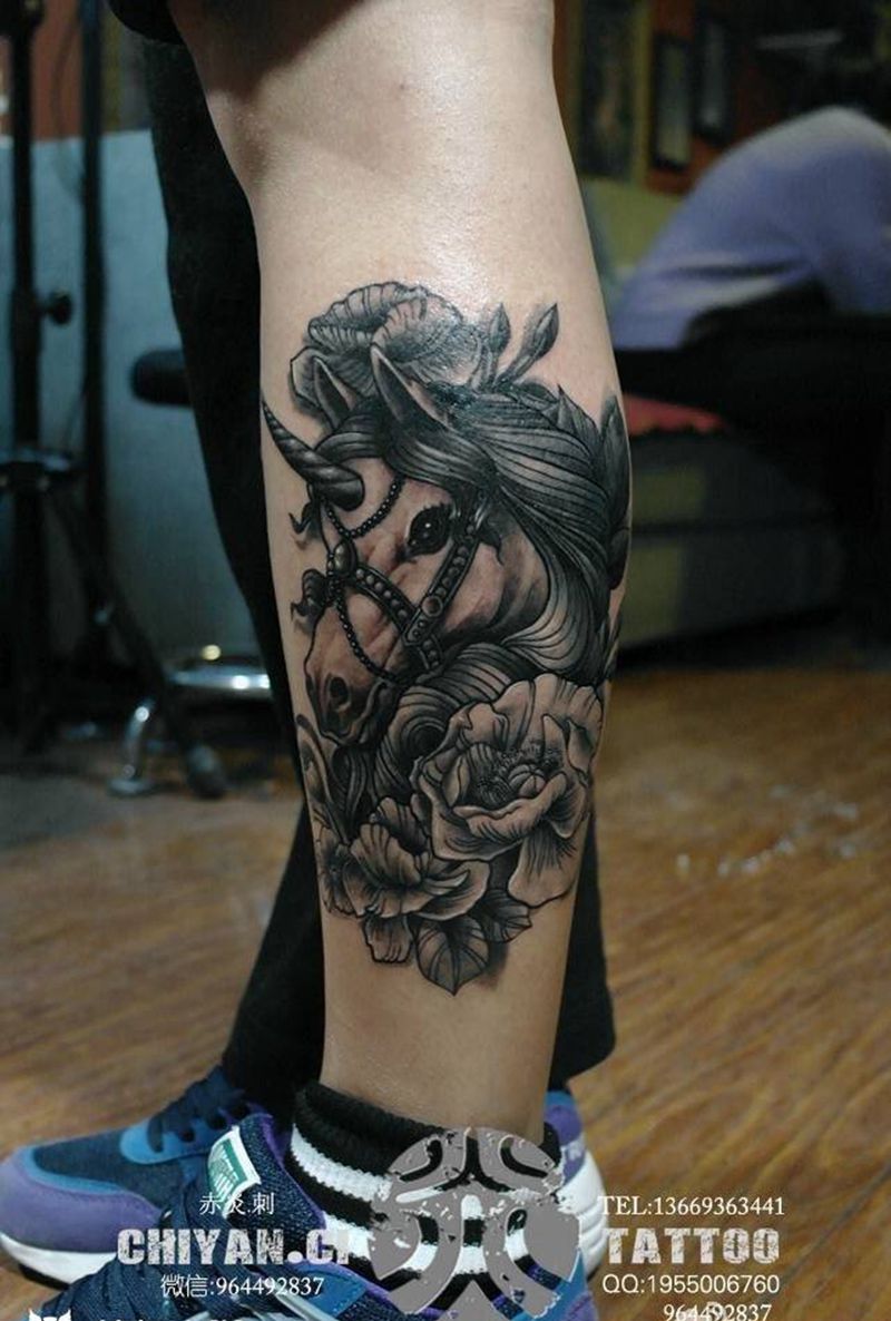 独角兽,靳凯作品纹身图片_欧美成品清新原创纹身图案