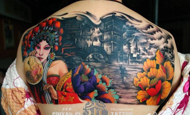 黑灰满背纹身图案