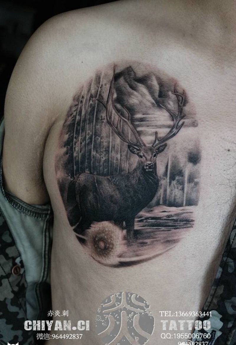 当前位置: 首页 >甘肃省兰州市纹身店-兰州赤炎刺纹身工作室纹身图案>鹿,靳凯作品纹身图片