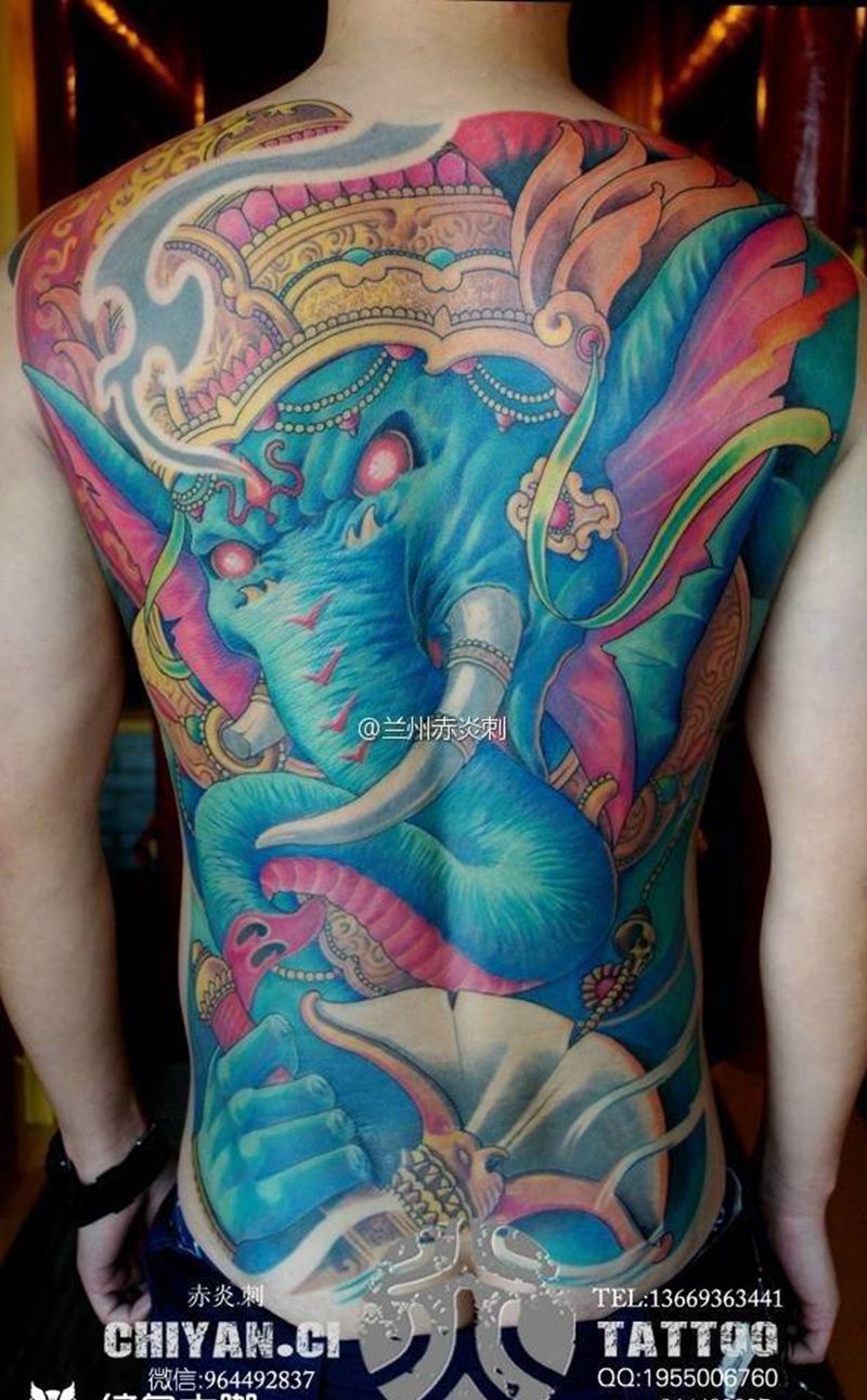 当前位置: 首页 >甘肃省兰州市纹身店-兰州赤炎刺纹身工作室纹身图案>满背象神已恢复纹身图片_成品背部传统写实鬼神人物宗教原创动物纹身图案