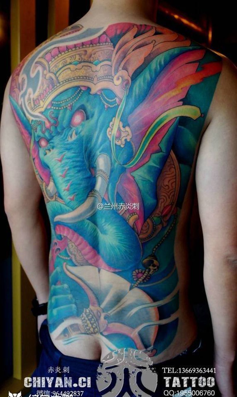 黑灰满背纹身图案