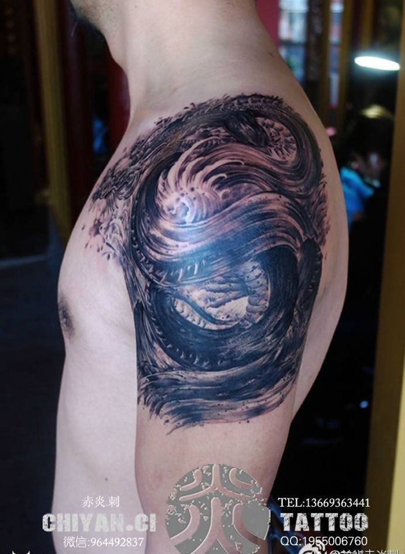 当前位置: 首页 >甘肃省兰州市纹身店-兰州赤炎刺纹身工作室纹身图案>水墨龙纹身图片_成品手臂传统国画宗教鬼神原创纹身图案