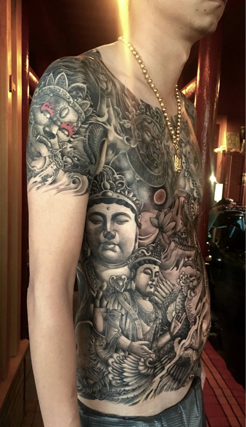 黑灰满背纹身图案