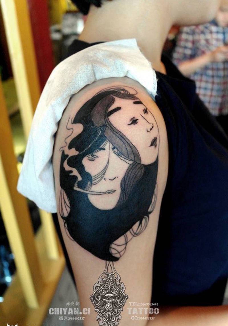 • 纹身吧推荐的披肩图腾半胛纹身图案作品展示