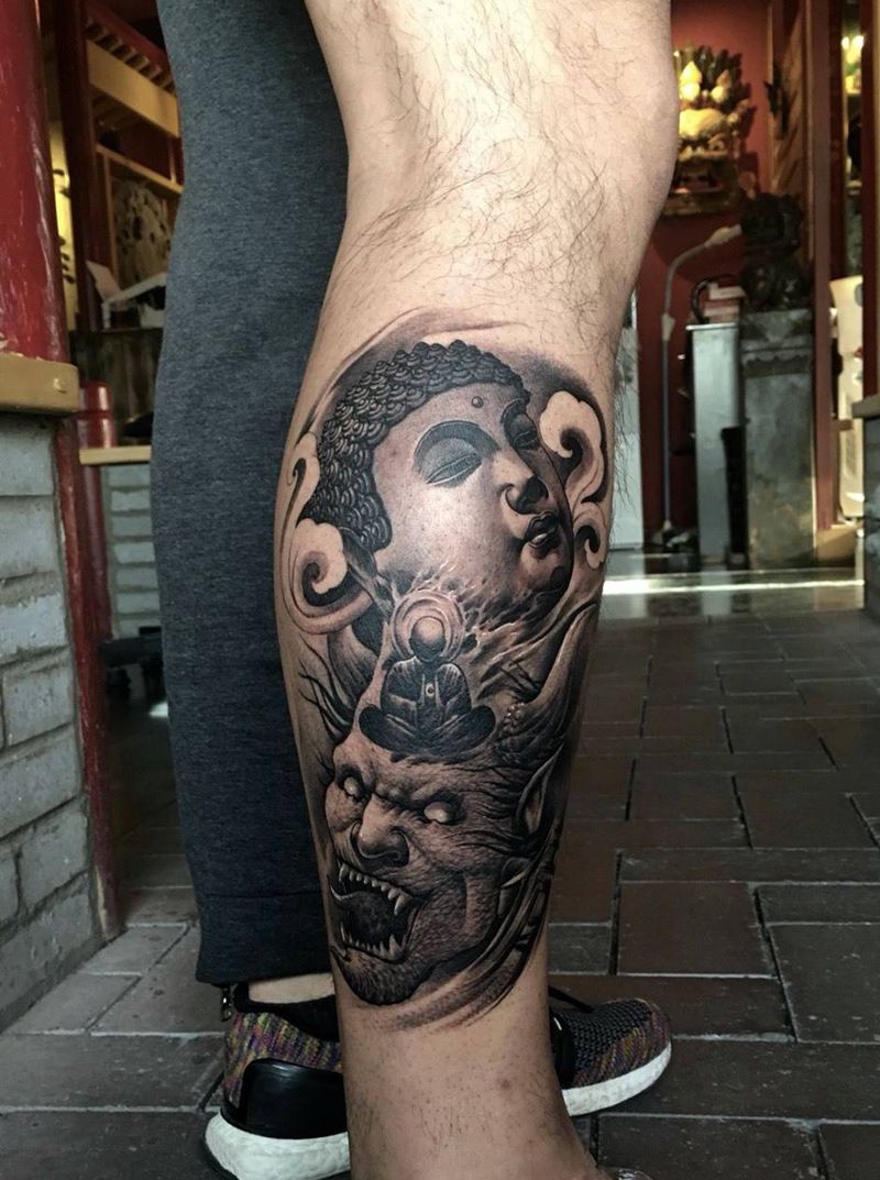 当前位置: 首页 >甘肃省兰州市纹身店-兰州赤炎刺纹身工作室纹身图案>佛与魔,靳凯作品原创纹身图片