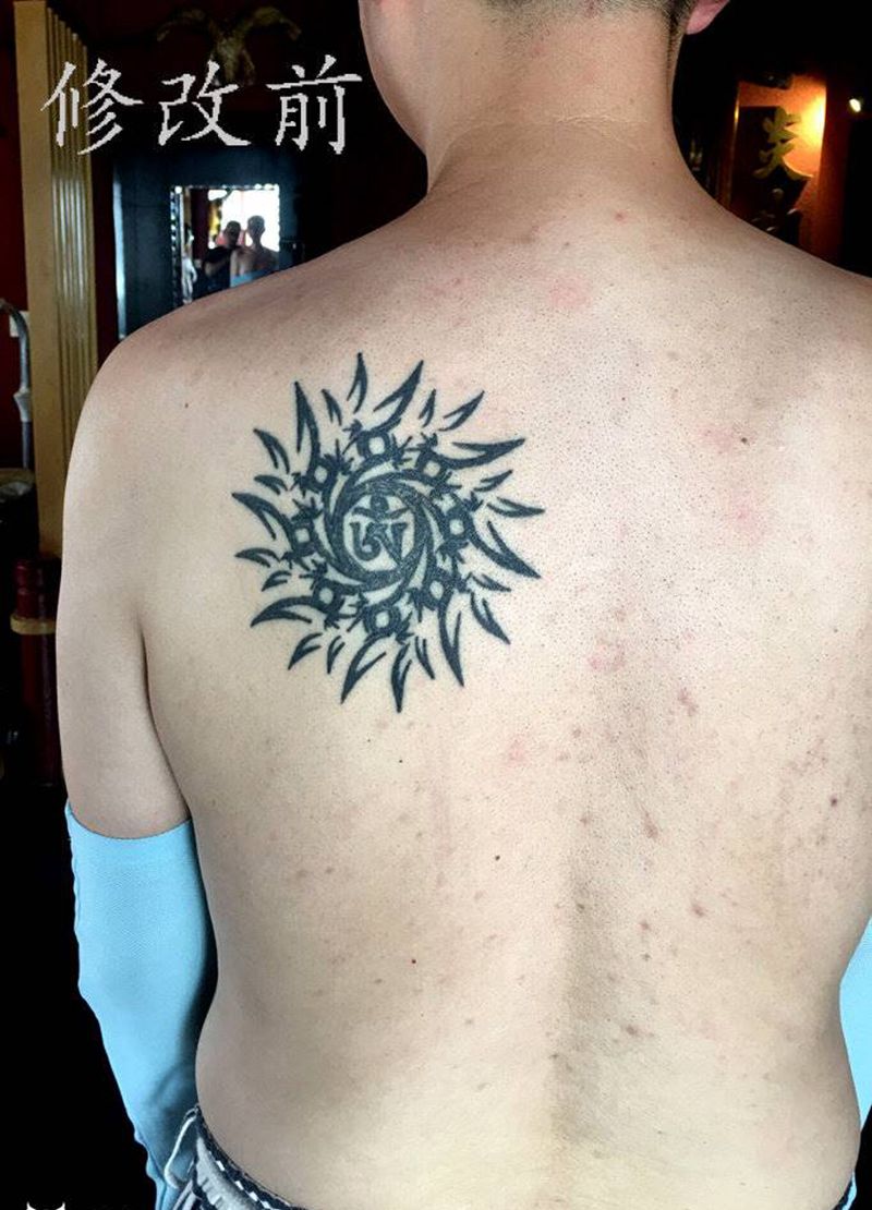 黑灰满背纹身图案