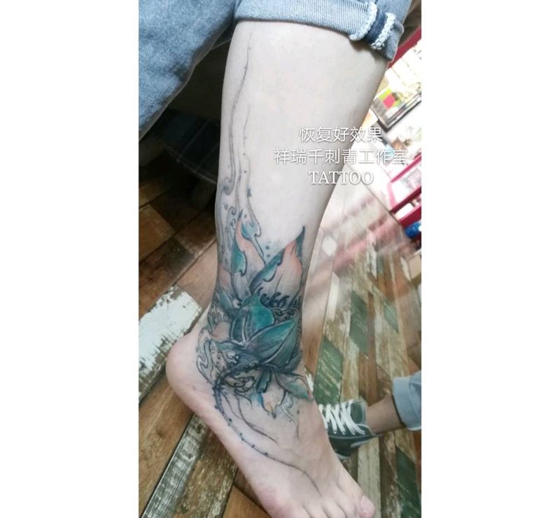 当前位置: 首页 >陕西省汉中市纹身店-祥瑞千刺青纹身图案>青莲纹身图片_脚部腿部水墨水彩旧图遮盖 莲花中国风纹身图案