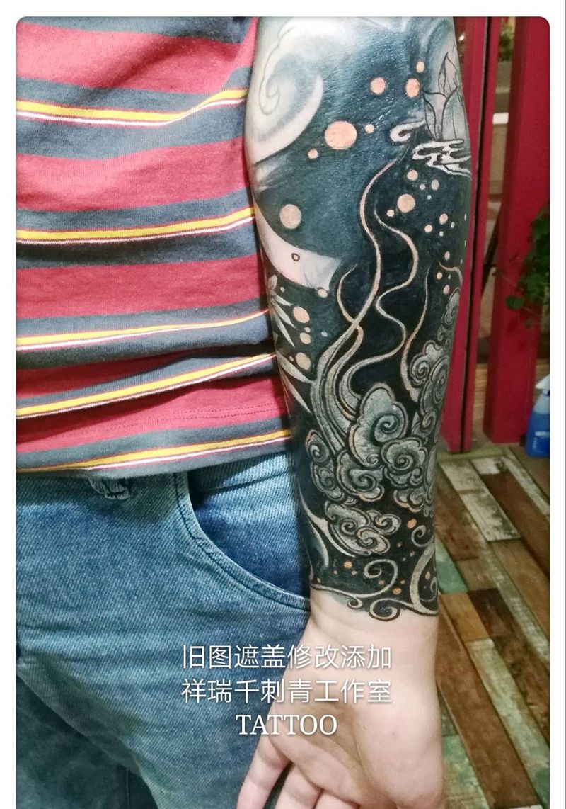 当前位置: 首页 >陕西省汉中市纹身店-祥瑞千刺青纹身图案>祥云 莲花纹身图片_手臂图腾新传统旧图遮盖旧图修改黑臂纹身图案