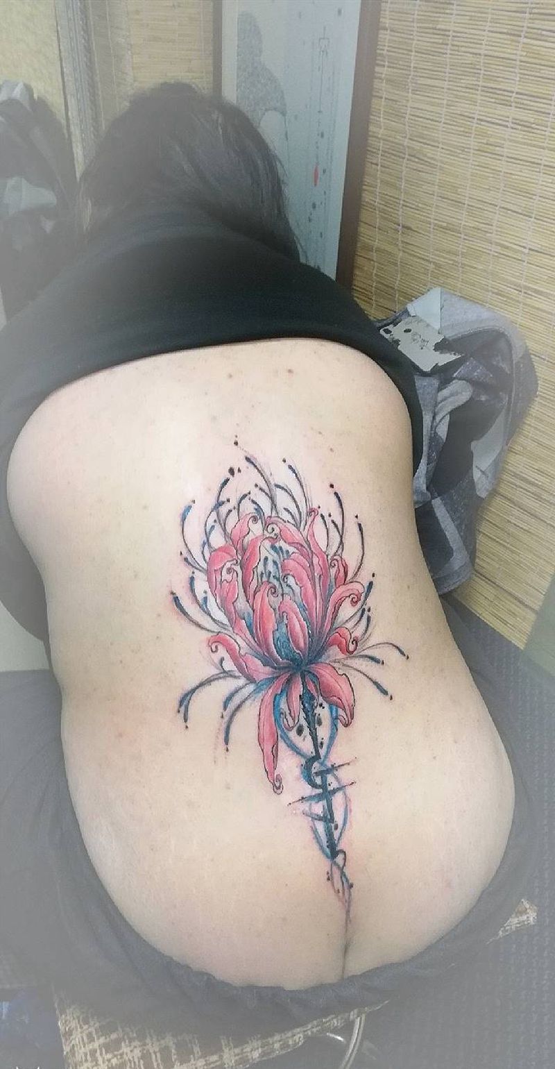 花开彼岸纹身图片_腰部新传统水墨纹身图案
