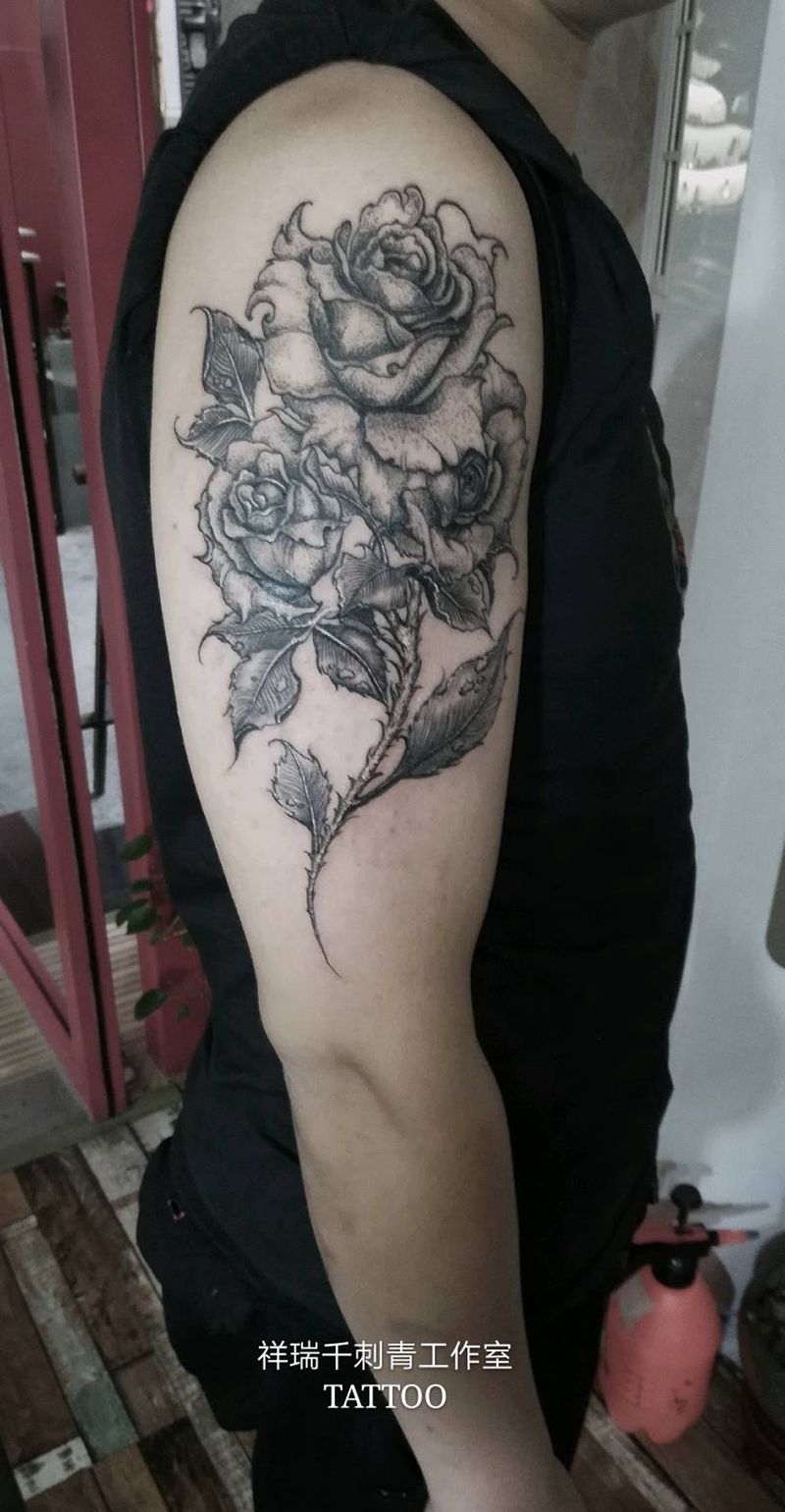 当前位置: 首页 >陕西省汉中市纹身店-祥瑞千刺青纹身图案>玫瑰花纹身图片_手臂点刺New School纹身图案
