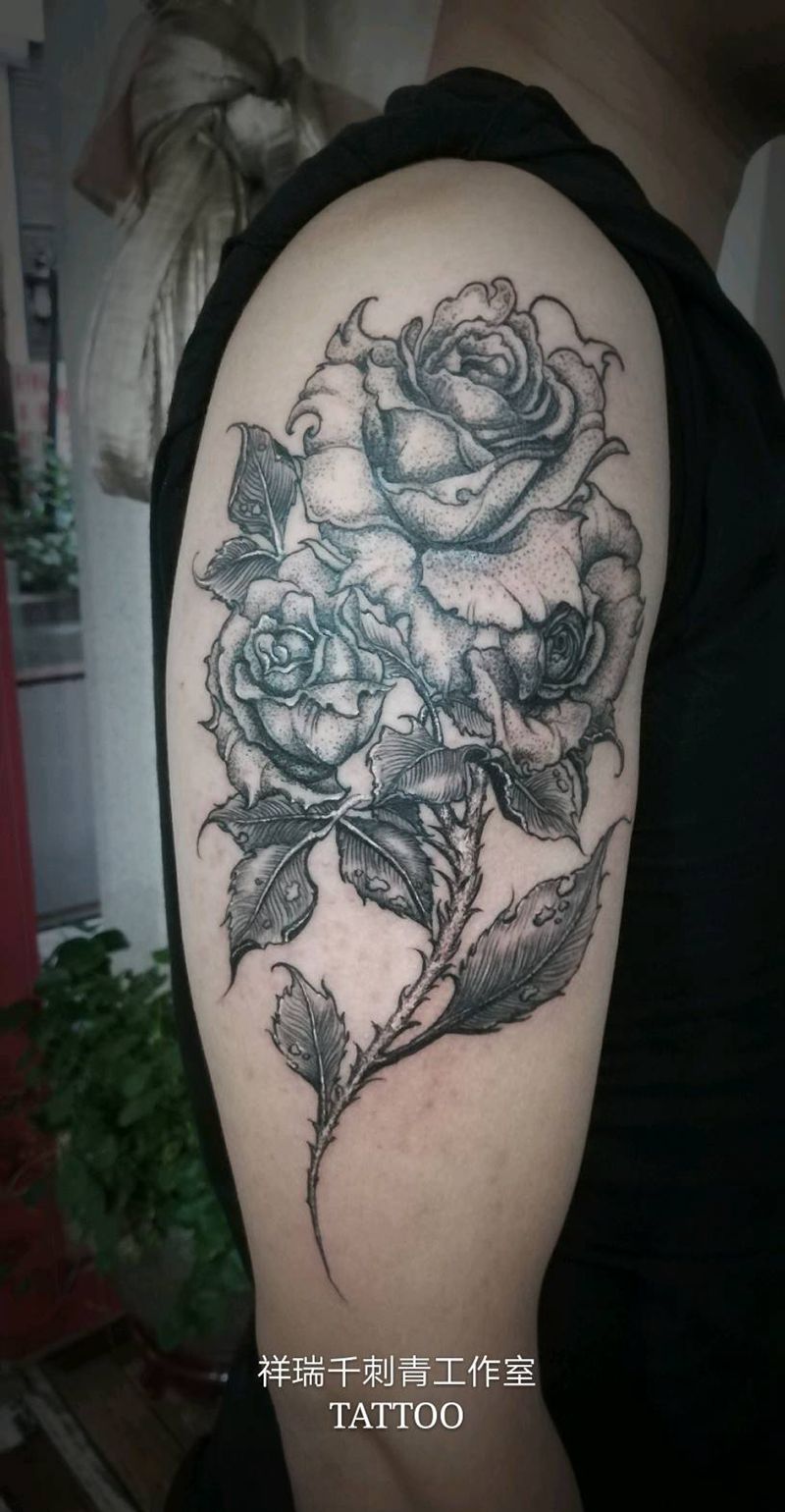 当前位置: 首页 >陕西省汉中市纹身店-祥瑞千刺青纹身图案>玫瑰花纹身图片_手臂点刺New School纹身图案