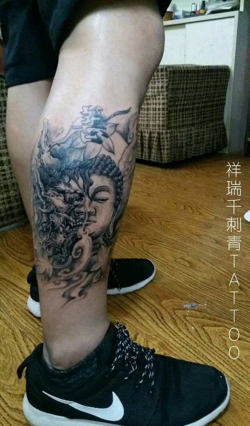 • T网红王老大花腿龙纹身图片_腿部新传统纹身图案