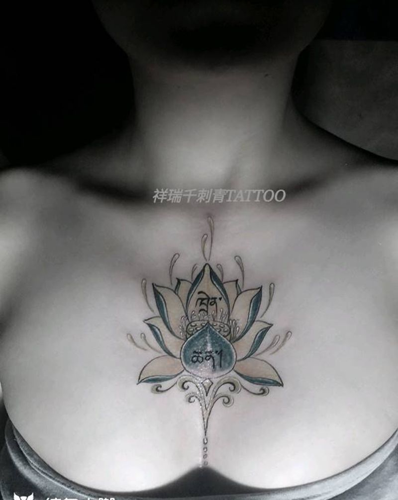 • 女性大花胸纹身_43张霸气漂亮的女性大花胸纹身图案作品