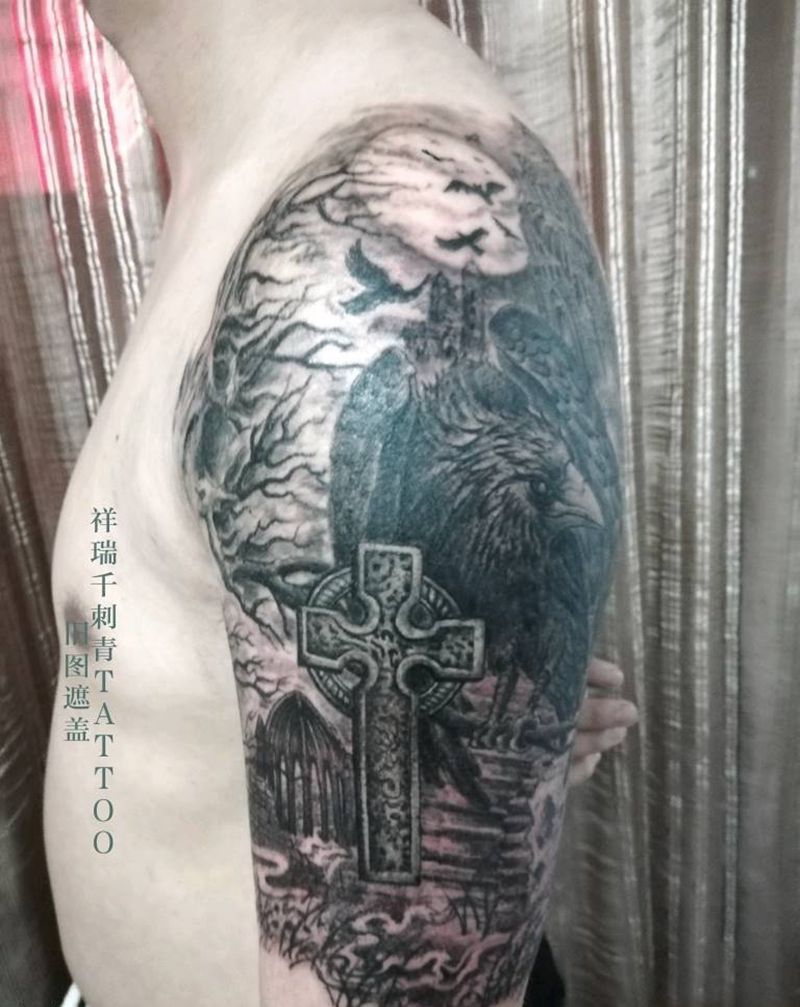 • 纹身吧推荐的披肩图腾半胛纹身图案作品展示
