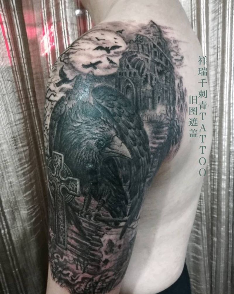• 纹身吧推荐的披肩图腾半胛纹身图案作品展示