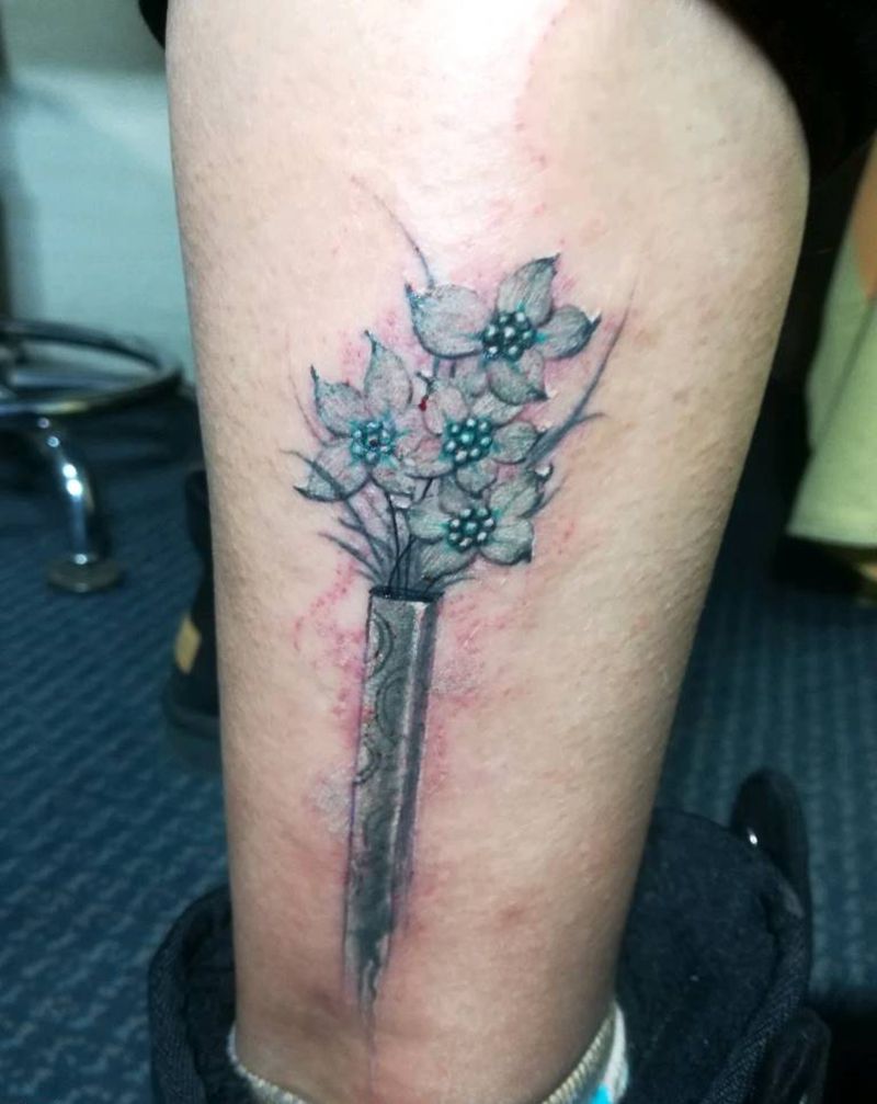 • T包小腿吹火男+阿多福纹身图片_腿部老传统新传统吹火男阿