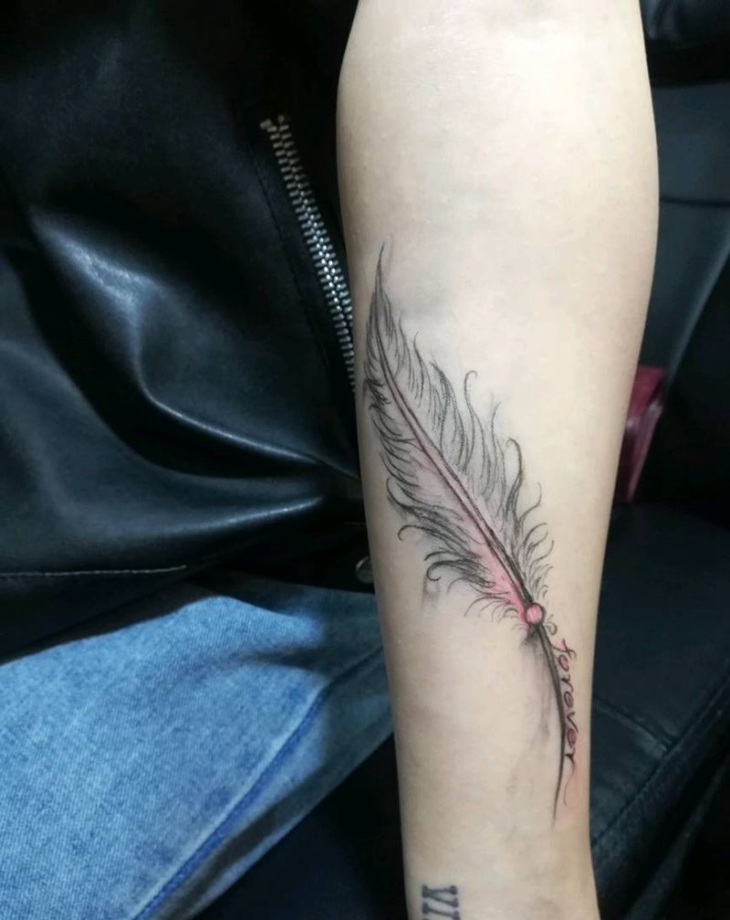 羽毛纹身图片_手臂欧美写实疤痕遮盖纹身图案