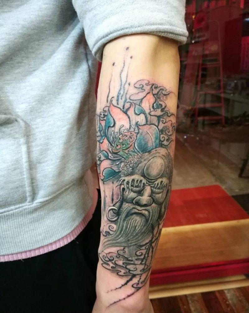 当前位置: 首页 >陕西省汉中市纹身店-祥瑞千刺青纹身图案>旧图遮盖~达摩纹身图片_手臂新传统水墨中国风纹身图案