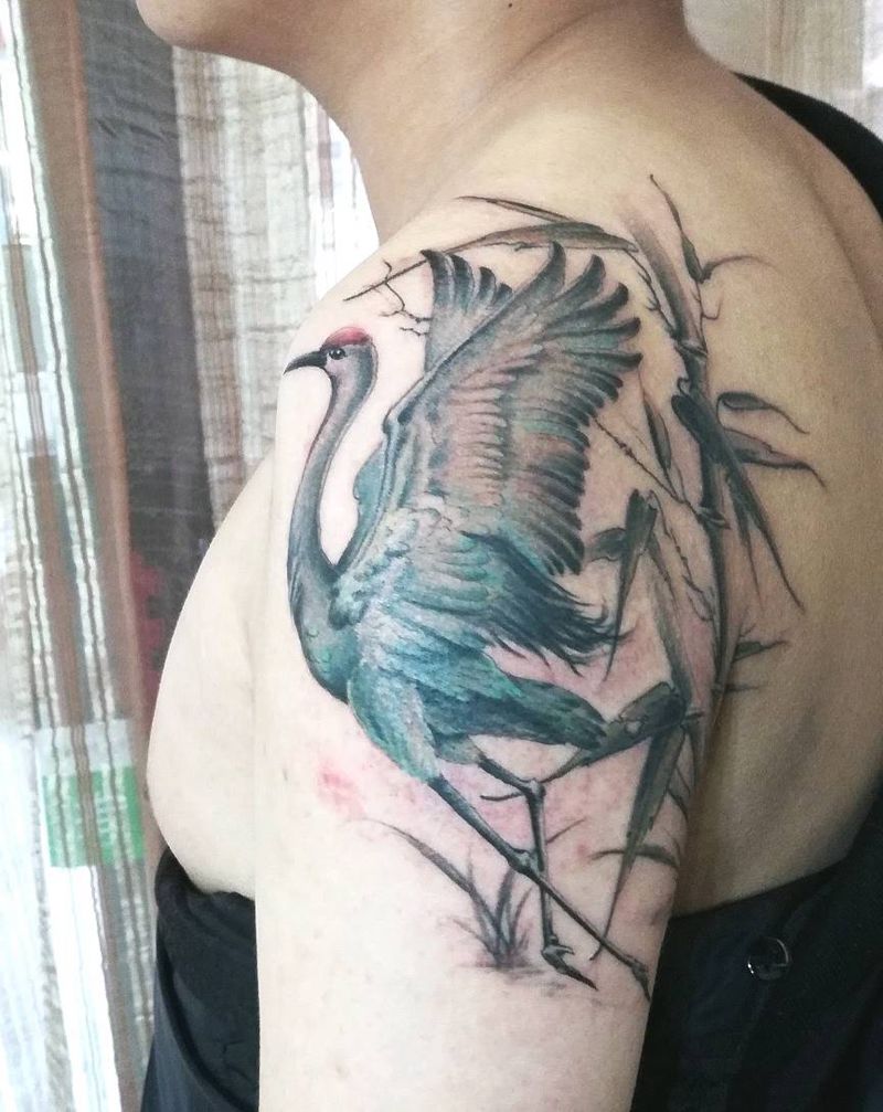 当前位置: 首页 >陕西省汉中市纹身店-祥瑞千刺青纹身图案>中国风~鹤纹身图片