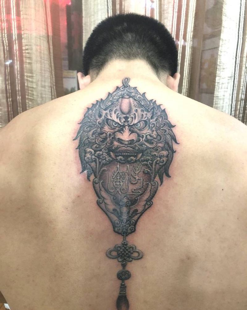 当前位置: 首页 >陕西省汉中市纹身店-祥瑞千刺青纹身图案>福狮守护牌纹身图片