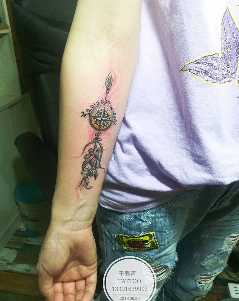 当前位置: 首页 >陕西省汉中市纹身店-祥瑞千刺青纹身图案>方向纹身图片_手臂情侣纹身图案