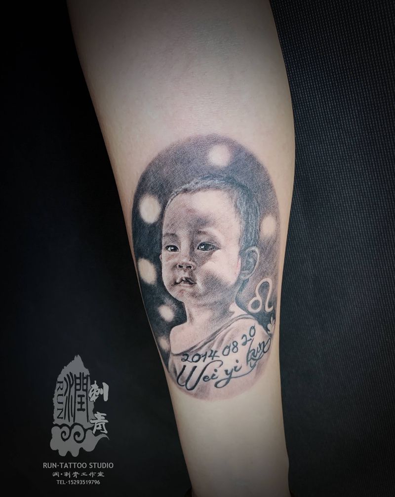 当前位置: 首页 >甘肃省兰州市纹身店-兰州润刺青工作室纹身图案>宝宝肖像纹身图片_手臂欧美写实纹身图案