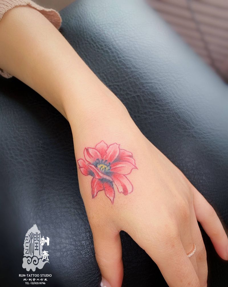• 手背潮流时尚的玫瑰花眼睛纹身图案