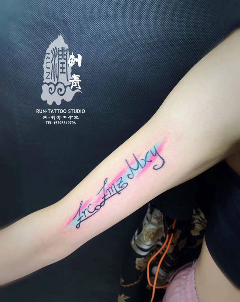 当前位置: 首页 >甘肃省兰州市纹身店-兰州润刺青工作室纹身图案>字母纹身图片_手部手臂水彩彩色字母清新纹身图案