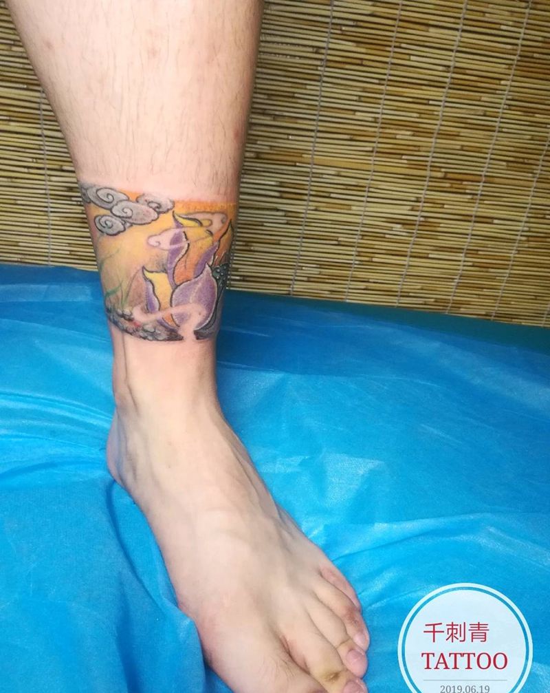 当前位置: 首页 >陕西省汉中市纹身店-祥瑞千刺青纹身图案>鱼和莲花纹身图片_腿部老传统水彩脚环纹身图案