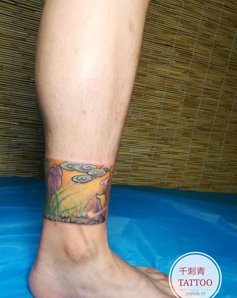 当前位置: 首页 >陕西省汉中市纹身店-祥瑞千刺青纹身图案>鱼和莲花纹身图片_腿部老传统水彩脚环纹身图案