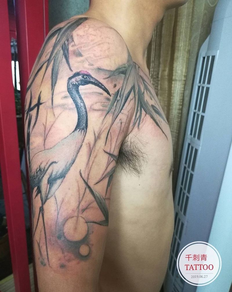 鹤竹水墨纹身图片_手臂胸部新传统水墨中国风纹身图案