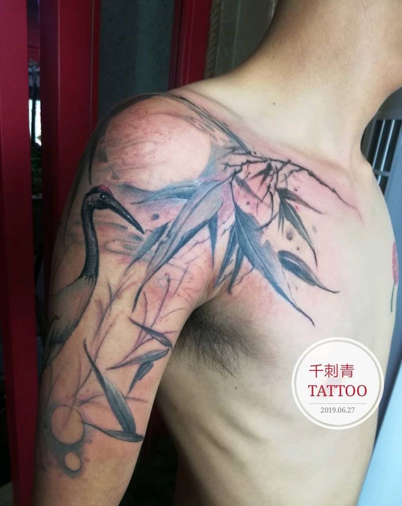 当前位置: 首页 >陕西省汉中市纹身店-祥瑞千刺青纹身图案>鹤竹水墨纹身图片_手臂胸部新传统水墨中国风纹身图案
