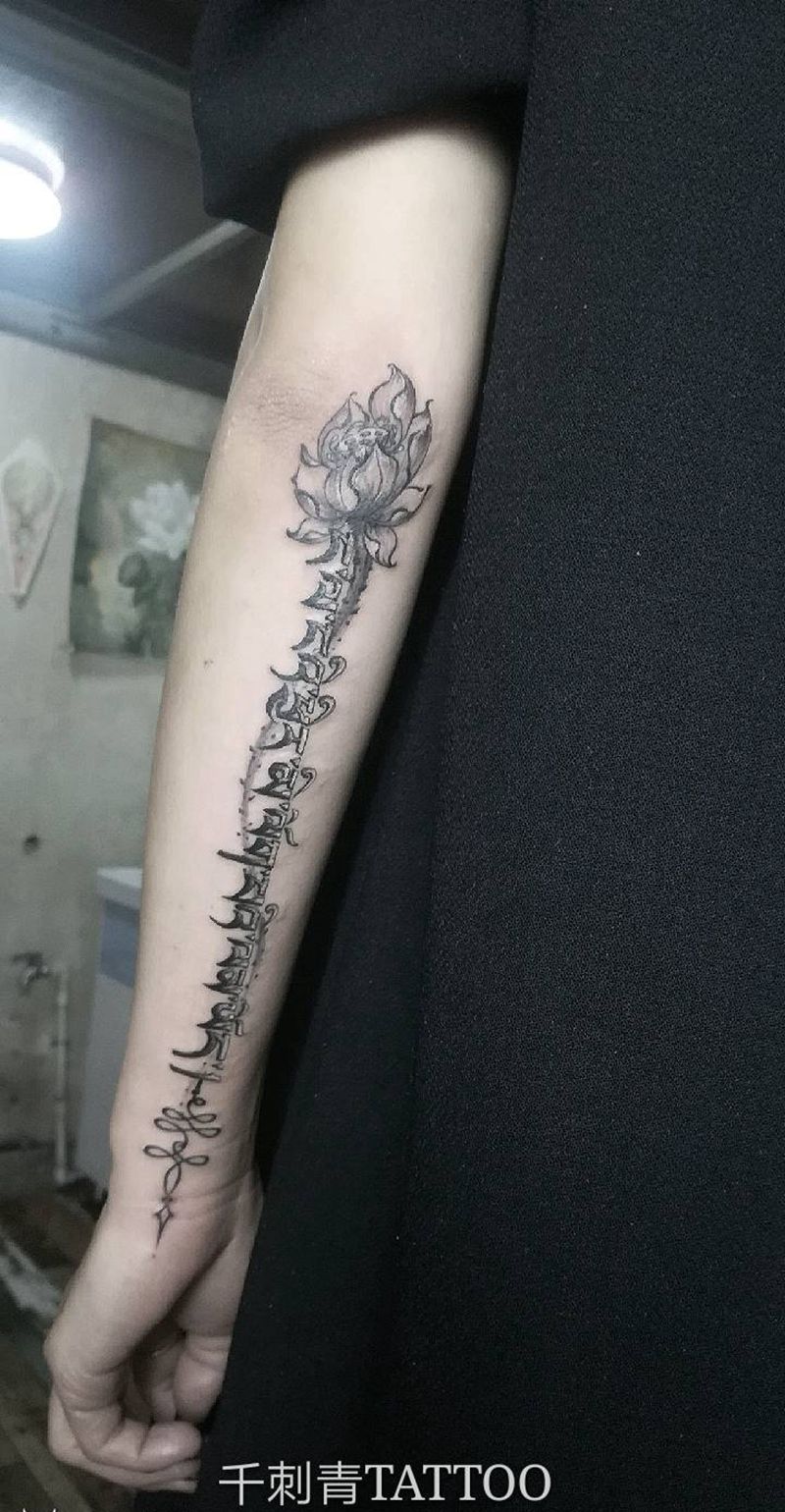 我有我的不归路纹身图片_手臂新传统藏文纹身图案