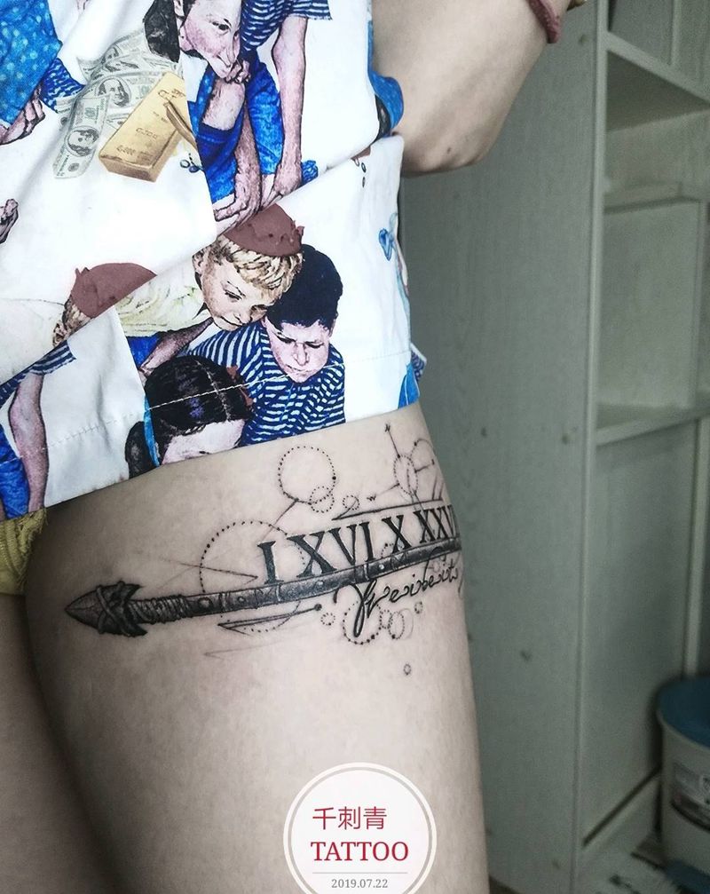 一只穿云箭与君来相见纹身图片_腿部臀部图腾几何纹身图案