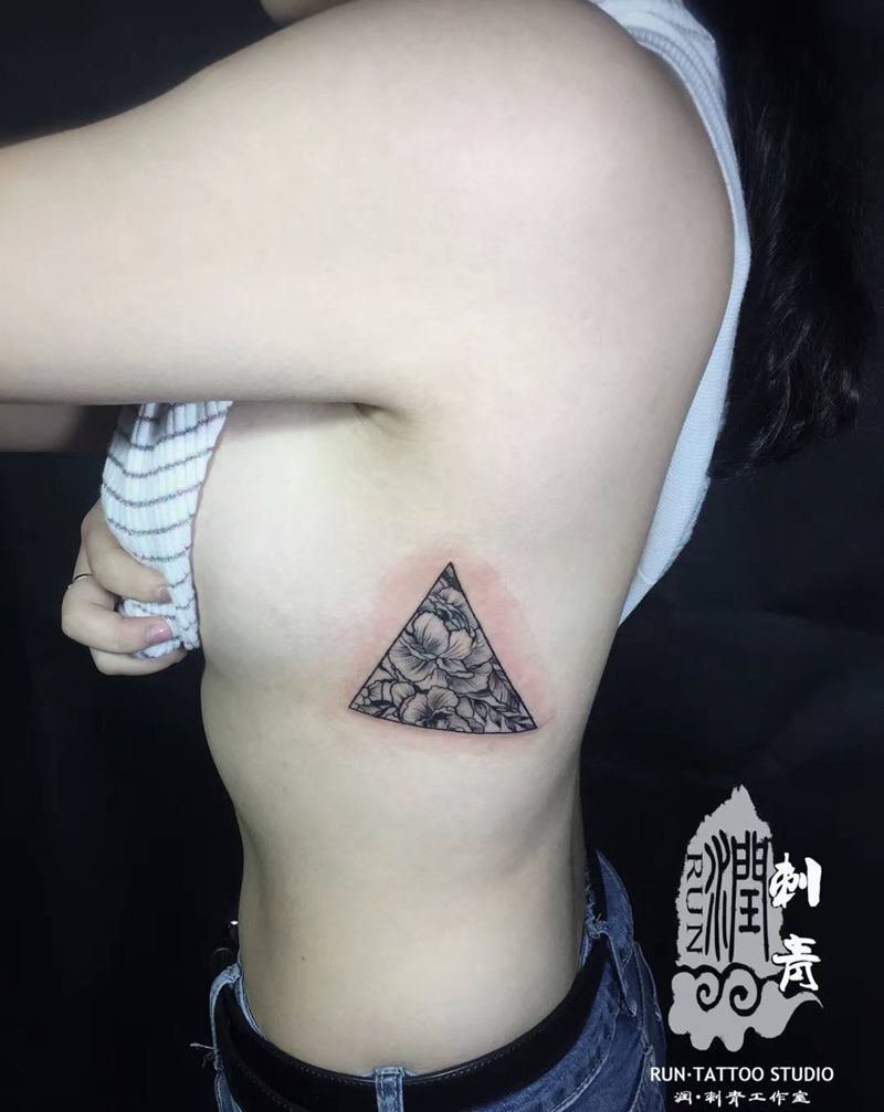 花纹身图片_腰部胸部点刺几何腰部花三角纹身图案