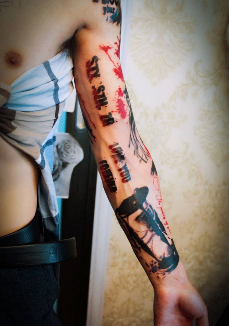 当前位置: 首页 >甘肃省兰州市纹身店-兰州润刺青工作室纹身图案>欧美泼墨拼接花臂纹身图片