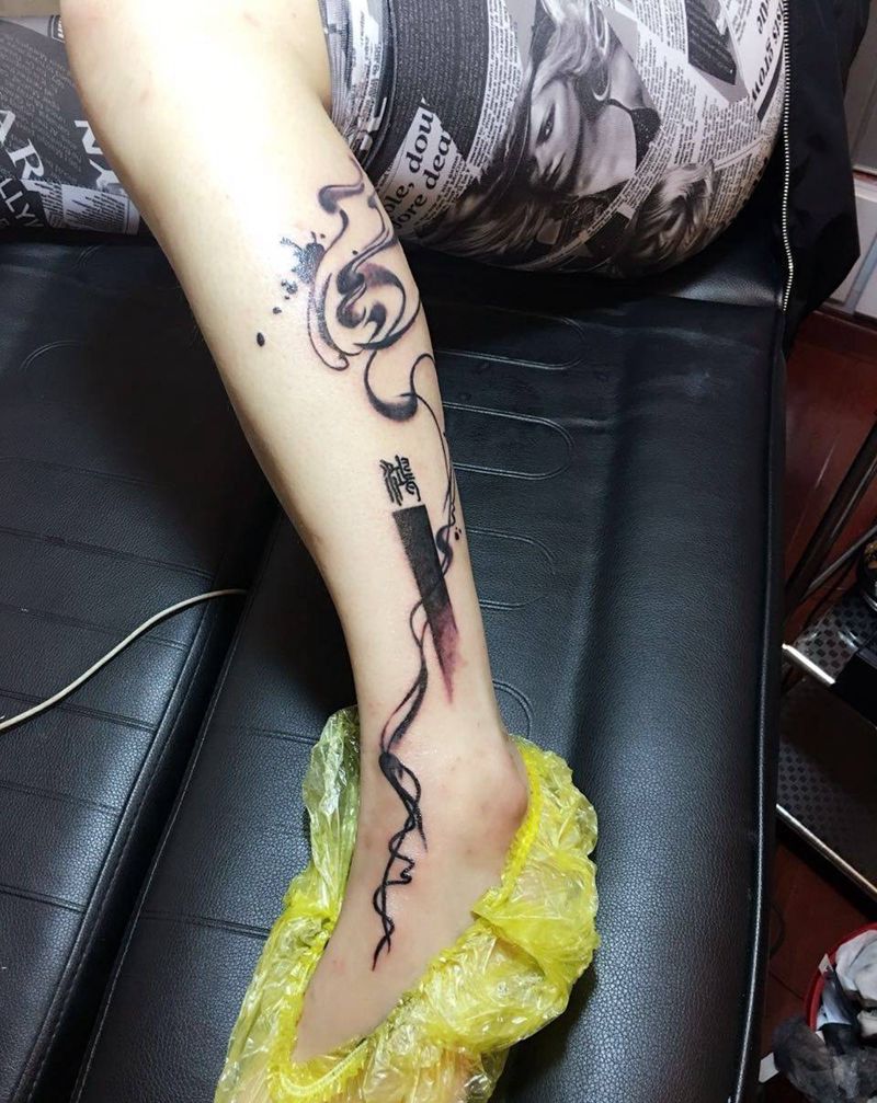 • T网红王老大花腿龙纹身图片_腿部新传统纹身图案