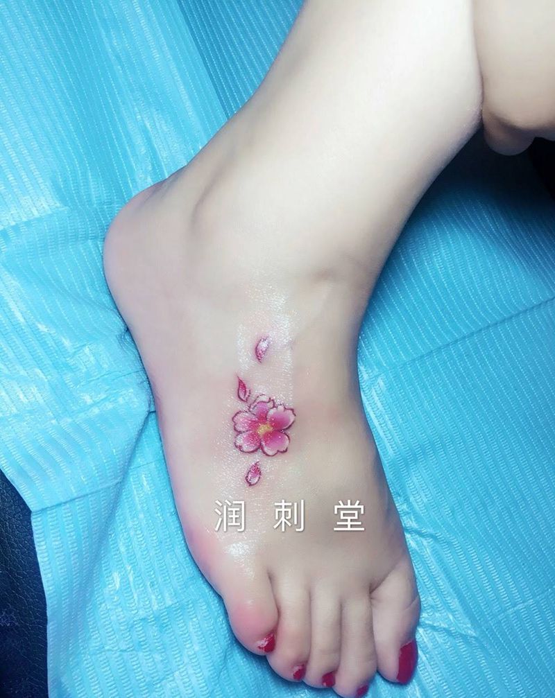 脚背小花一枚纹身图片