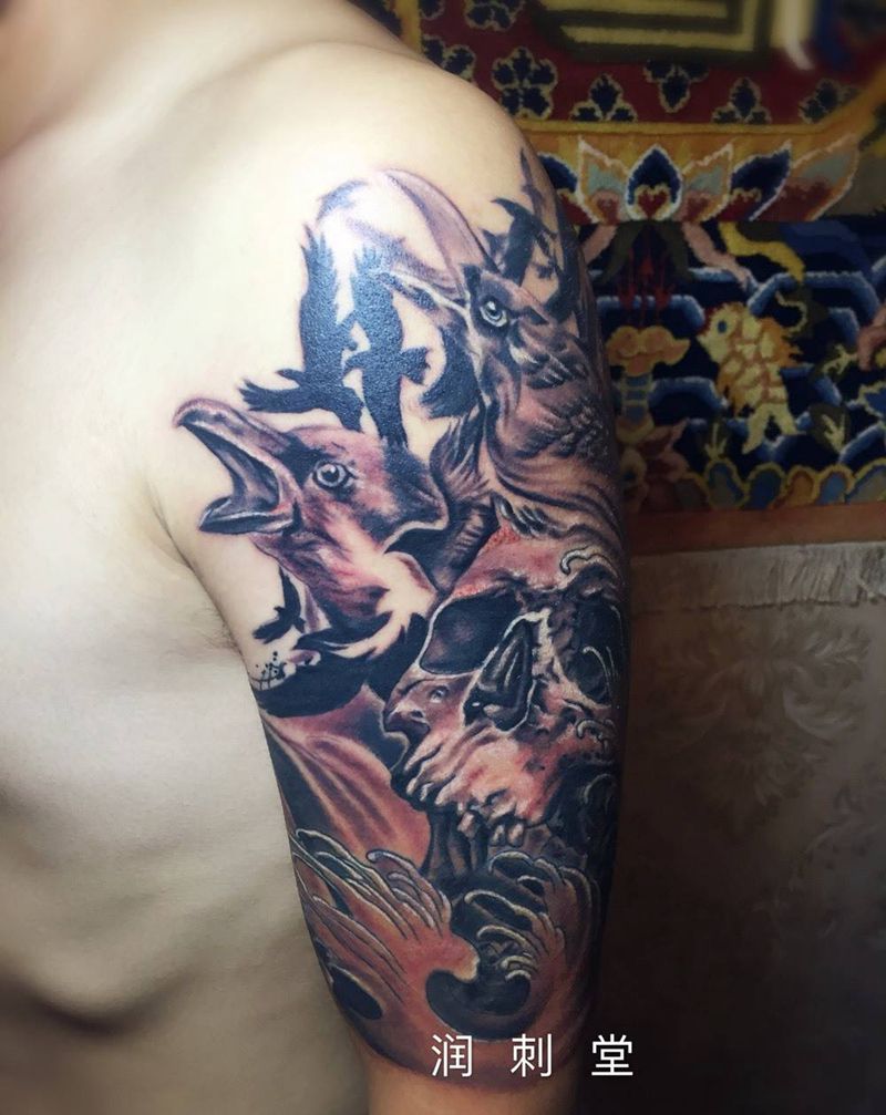 当前位置: 首页 >甘肃省兰州市纹身店-兰州润刺青工作室纹身图案>大臂纹身,这种风格你们喜欢吗?纹身图片