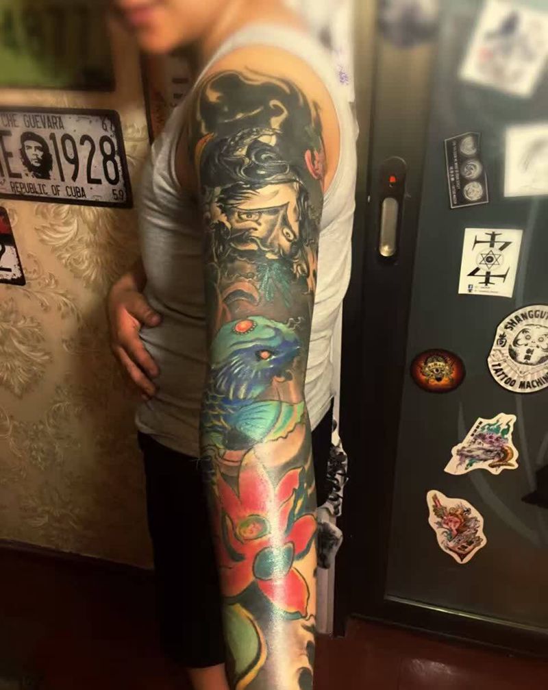 当前位置: 首页 >甘肃省兰州市纹身店-兰州润刺青工作室纹身图案>般若锦鲤花臂纹身图片