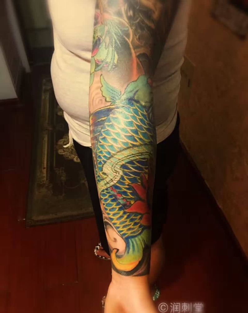 当前位置: 首页 >甘肃省兰州市纹身店-兰州润刺青工作室纹身图案>般若锦鲤花臂纹身图片