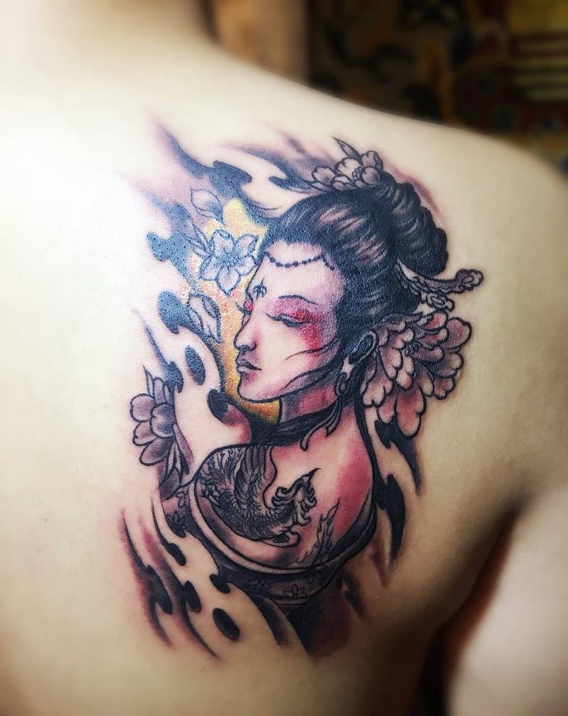 当前位置: 首页 >甘肃省兰州市纹身店-兰州润刺青工作室纹身图案>艺妓纹身图片