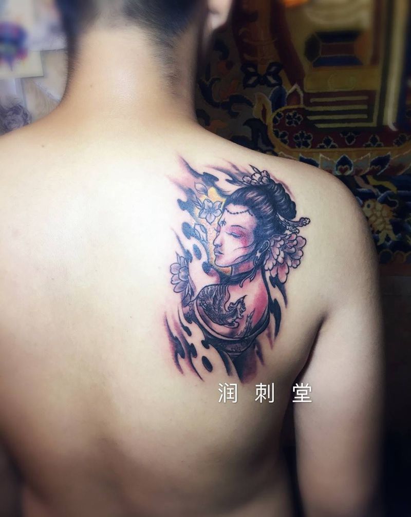 当前位置: 首页 >甘肃省兰州市纹身店-兰州润刺青工作室纹身图案>艺妓纹身图片
