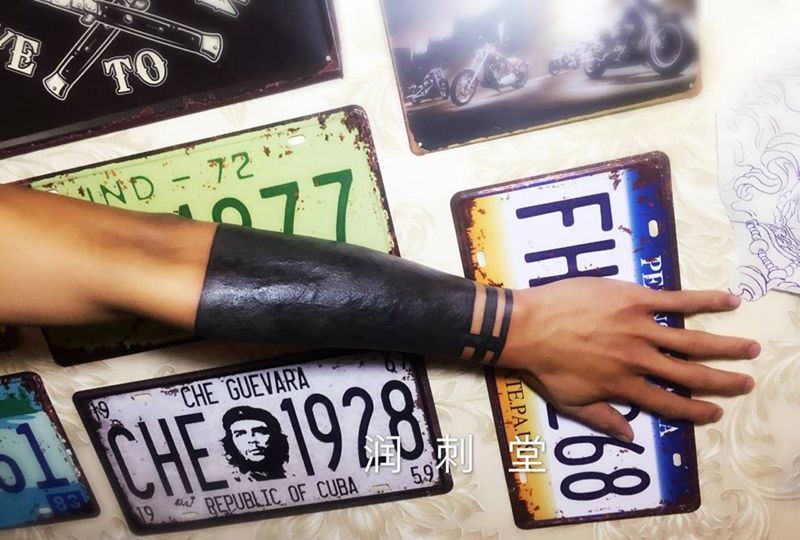 润刺堂出品#暗花黑臂遮盖#小伙当过侦查兵,很坚强[悠闲]谢谢信任纹身图片