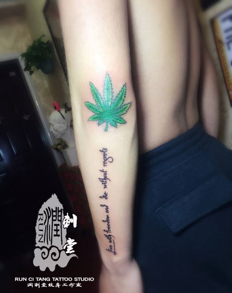 当前位置: 首页 >甘肃省兰州市纹身店-兰州润刺青工作室纹身图案>润刺青出品#麻叶与英文#纹身图片