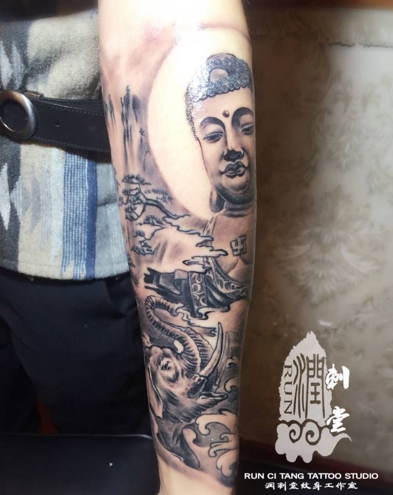 当前位置: 首页 >甘肃省兰州市纹身店-兰州润刺青工作室纹身图案>大日如来纹身图片_成品手臂传统宗教纹身图案